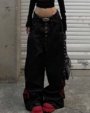 Red Side Snake Baggy Jeans