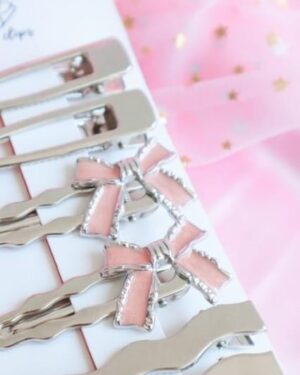 Pink Bow 3 Hair Clips Set