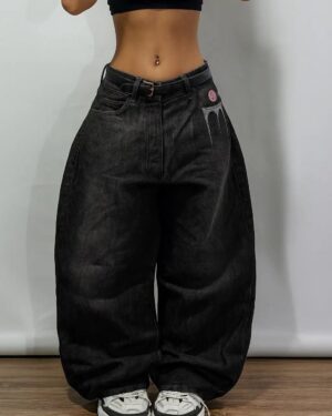 Skull Back Pocket Embroidered Baggy Jeans